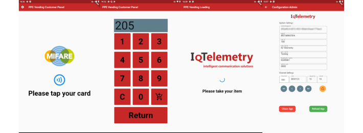 Enhanced factory worker experience with card-based PPE vending automation in manufacturing plants; facilitated Bluetooth communication for item selection and dispensing.